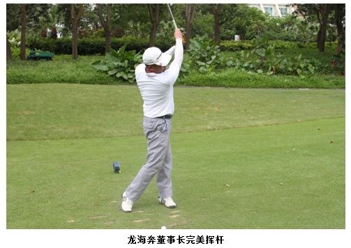 為了表現(xiàn)地主之誼,龍海奔董事長(zhǎng)特別讓小崎先生先開球。雖然已值花甲高齡,但小崎先生的身手卻相當(dāng)穩(wěn)健,利落的揮桿,小白球在空中劃出一道漂亮的弧線,完美的開球博得了在場(chǎng)人員的熱烈掌聲。 而龍海奔董事長(zhǎng)也充分展現(xiàn)出了自己扎實(shí)、穩(wěn)健的高超球技,握桿、站定、揮桿、擊球,一系列動(dòng)作一氣呵成,淡定悠閑的神態(tài),隱隱有大將之風(fēng)。就連小崎先生也被龍海奔董事長(zhǎng)的球技折服,由衷贊嘆其姿勢(shì)之標(biāo)準(zhǔn)絲毫不亞于專業(yè)球手。