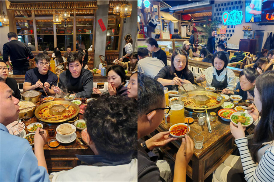 暖黃燈光裹著煙火氣,圍坐的桌案上,銅鍋咕嘟著熱辣香氣,金黃哈達(dá)襯著笑眼,碰杯聲撞碎了旅途的疲憊。從九寨溝的五彩仙境到黃龍寨的瑤池彩林,再到成都的麻辣鮮香,把山川盛景揉進(jìn)這桌熱宴——是并肩看過(guò)風(fēng)景的人,才懂這杯酒里的歡喜與熱絡(luò)。