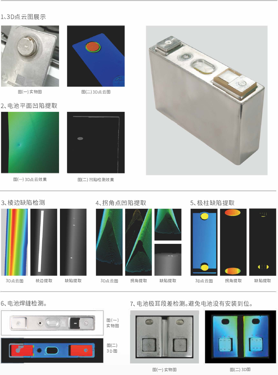 檢測優(yōu)勢 不需要額外光源:消除光源安裝的影響 段差測量:可檢測焊接面和周邊的高度差 準確測量:可結(jié)合2D灰度圖像計算 快速檢測:一次掃描可計算任意點的平整度