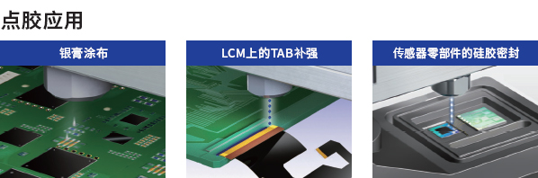 超高速、非接觸式噴射性點(diǎn)膠機(jī) 超高速:Max:1200Hz 微量:0.5nl/shot~